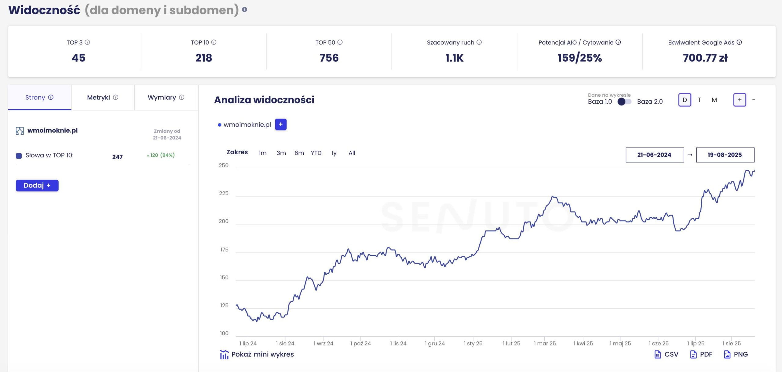 - +120% wzrost słów w TOP10 Google